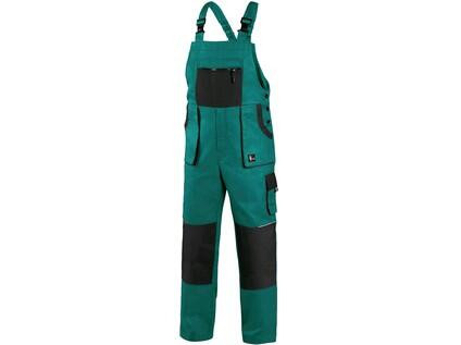 Pánské montérkové kalhoty s náprsenkou, náprsní kapsa na zip, pas vzadu do gumy, přední kapsy, boční kapsa na svinovací / skládací metr, boční kapsa na mobil / peněženku, zdvojená kolena, zadní kapsa s klopou, šle s gumou vzadu, reflexní doplňky. Doporučené použití: stavebnictví, lehký průmysl, logistika, skladová manipulace, autoservisy, údržba, montáže, zemědělství, zahrada, hobby.