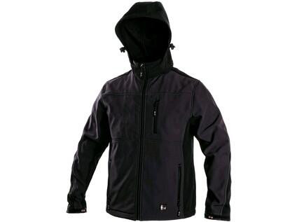 Pánská softshellová bunda s odepínací kapucí, odolná proti vodě a větru, zapínání na zip, větrání v podpaží, rukávy s regulovatelnými manžetami, náprsní kapsa na zip, stahování v dolním okraji, 2 boční kapsy na zip, reflexní doplňky, TPU membrána, odolnost materiálu proti průniku vody 10 000 mm mimo oblast švů, paropropustnost 3 000 g/m2/24h.