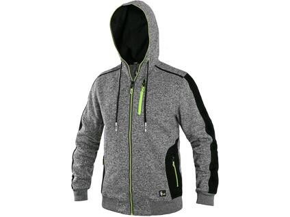 Pánská bunda z pleteniny, kombinace materiálů, kapuce napevno, doplňky v kontrastní žluté barvě, pas a rukávy ukončeny pružnou manžetou, reflexní doplňky, náprsní kapsa na zip, 2 spodní kapsy na zip.